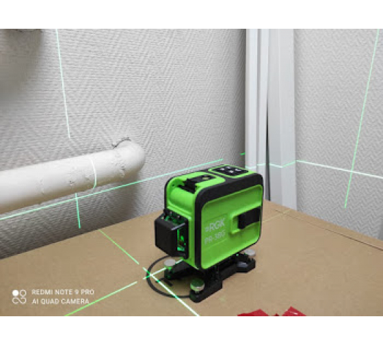 Лазерный нивелир RGK PR-38G - это уровень с 3 замкнутыми плоскостями для выполнения строительных, отделочных и дизайнерских работ в помещениях и за их пределами. Прибор проецирует 1 горизонтальный луч на высоте 2.3 см от пола и 2 взаимно перпендикулярных вертикальных. Зеленые лучи обладают лучшей видимостью в сравнении с красными, особенно в условиях хорошей освещенности. При точности ±0,2 мм/м рабочая дальность составляет 20 м, она может быть увеличена до 50 м при использовании приемника.
