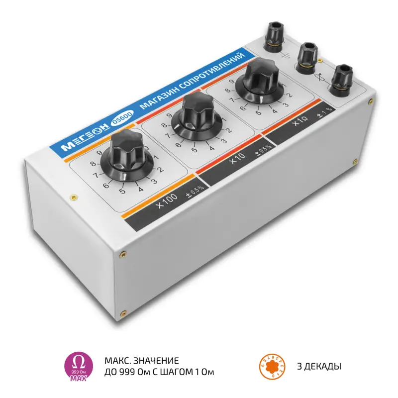 Одной из ключевых характеристик МЕГЕОН 05600 является наличие трех декад, что значительно расширяет возможности настройки и позволяет быстро и эффективно находить нужное значение сопротивления. Это особенно важно в условиях, когда требуется проводить множество измерений или калибровок в короткие сроки. Точность устройства достигает 0,5%, что делает его надежным инструментом для профессионалов, работающих в области электроники, электротехники и других смежных дисциплин.